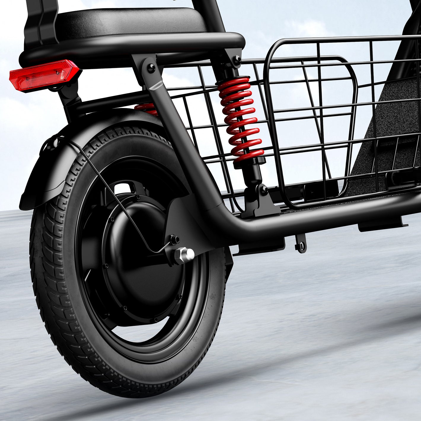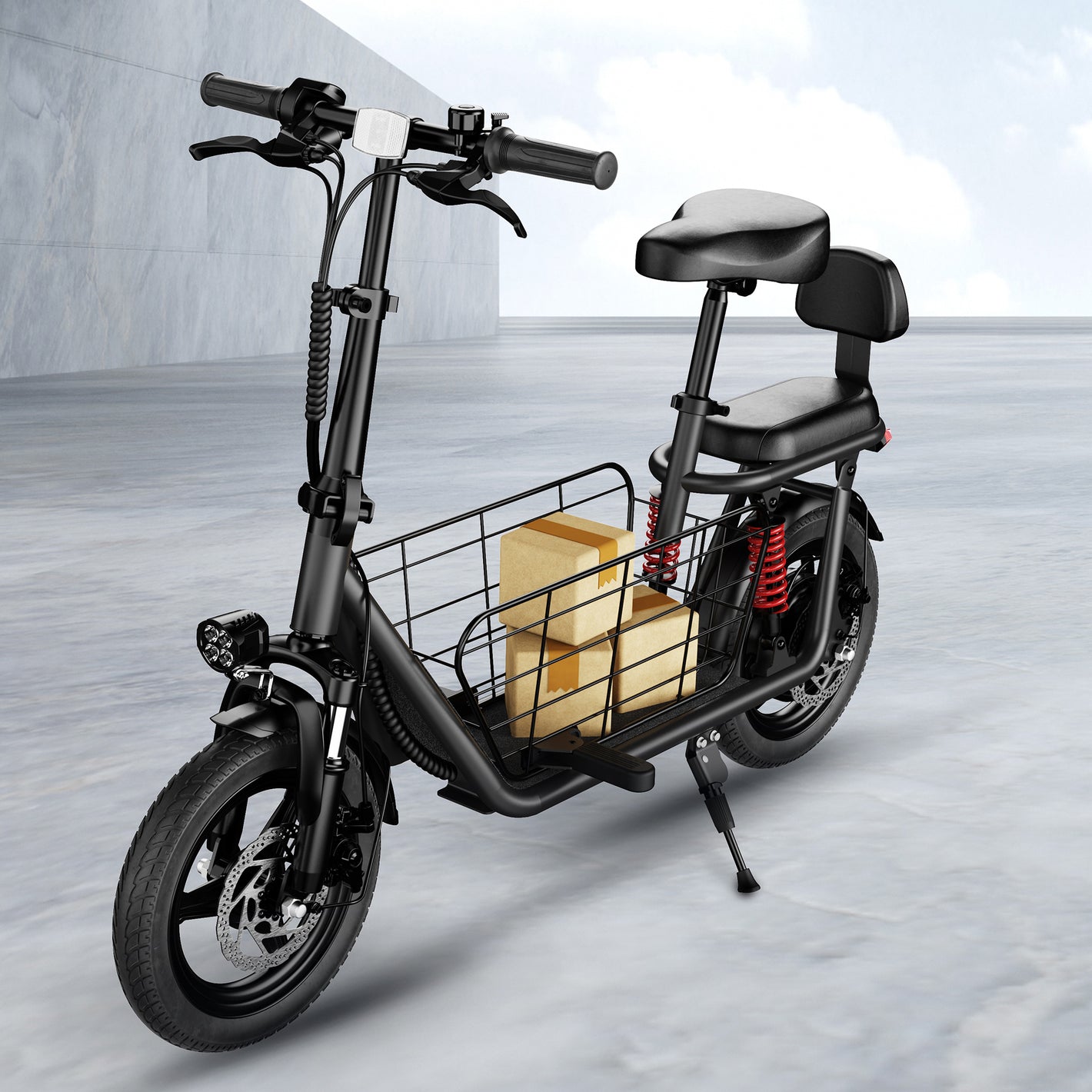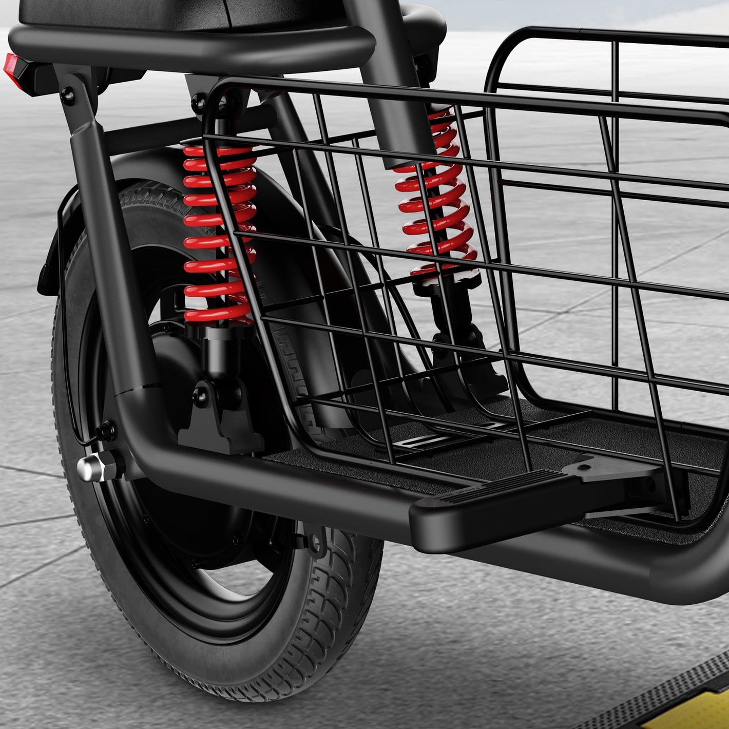 Designed with safety and comfort in mind, the C3 features a detachable cargo basket, dual disc brakes, and dual suspensions, ensuring smooth and secure rides. The extra seat for a child adds practicality for families, and the robust carbon alloy frame supports up to 330lbs. Plus, the 14-inch tires provide excellent traction and stability on various terrains.