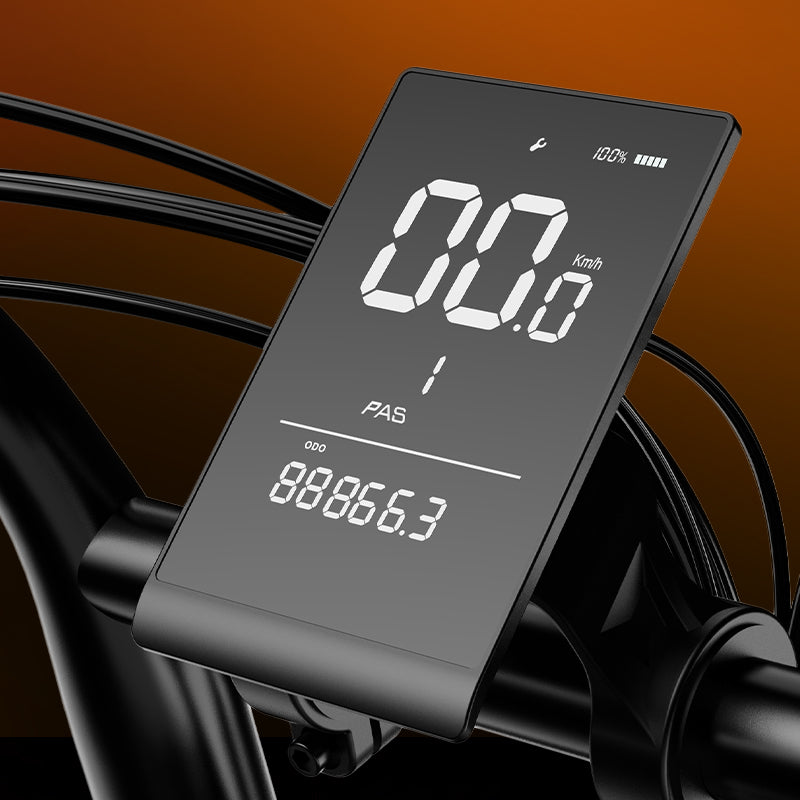 Features an advanced LCD display that clearly shows battery level, speed, distance, and PAS level—making it easy to track your ride data at a glance.